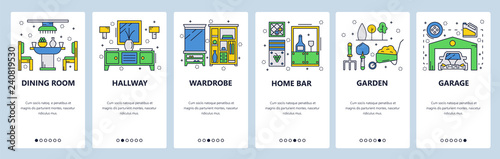 Vector web site linear art onboarding screens template. User experience, prototyping and web development. Menu banners for website and mobile app development. Modern design flat illustration