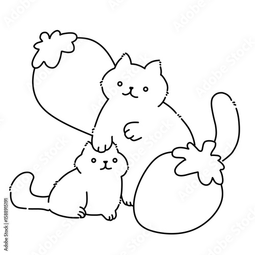 Vector well-fed cat. Cute pet animal cartoon icon. kitten character and fish skeleton heap illustration isolated on white background