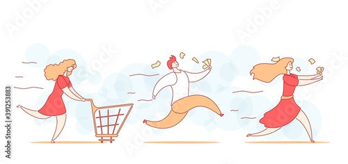 Vegan lifestyle typography vector banner template. People eating fresh fruits and drinking almond milk. Healthy eating, vegetarenian food, vegan diet, organic nutrition.