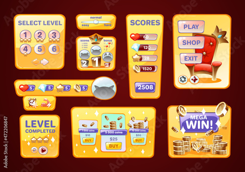 Automatic vending machine set with food and beverages vector flat isolated illustration. Cold soft drinks, snacks, fast food, ice cream, coffee, popcorn retail.