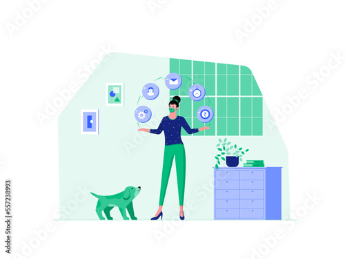 Veterinary clinic creative papercut design for advertising promotion poster. Female doctor providing healthcare service or medical center for domestic animals in cross shape frame vector illustration