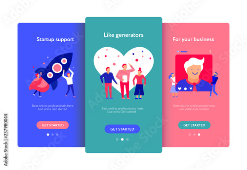 Veterinary clinic, Animal vaccine and Animal research mobile app onboarding screens. Menu banner vector template for website and application development.