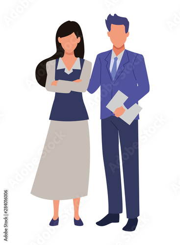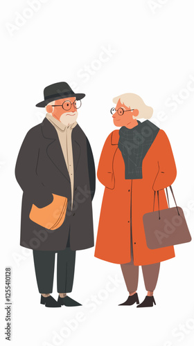 Victorian couple lady and gentleman, flat vector illustration. English man with umbrella and woman with handbag wearing elegant vintage clothes.