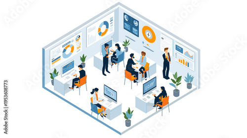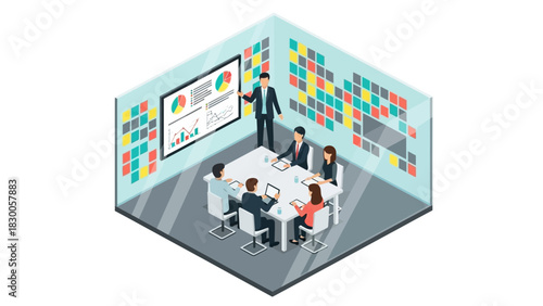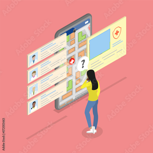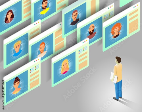 Video conference, online communication, virtual meeting, flat vector isometric illustration. Video call communication technology, group chat application, webinar, remote education, distance learning.