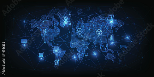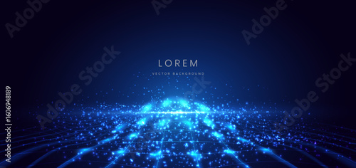 Video content concept vector polygonal art style illustration. Human hand touching play button on screen low poly wireframe mesh made of points, lines and shapes. Video streaming technology.