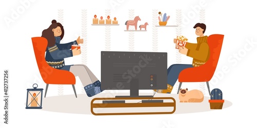 Young man pro gamer in headphones playing online video game on desktop computer, vector illustration. E-sports tournament, cyber sport, pc gaming concept for web banner, website page etc.