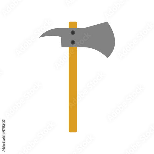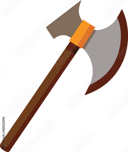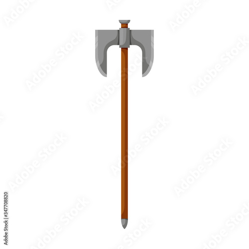 Viking battle ax vector. Double axe weapon icon. Medieval knight metal blade illustration. Barbarian war hatchet on handle isolated on white background