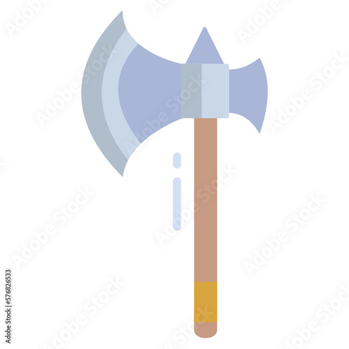 Viking battle sided axe vector. Medieval weapon illustration. Vintage steel blade sharp metal war hatchet icon isolated on white background