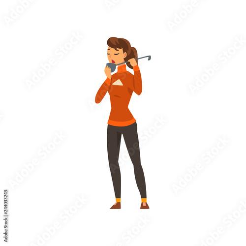 Viking warrior woman with sword vector. Medieval fantasy cartoon girl valkyrie or amazon illustration isolated on white background