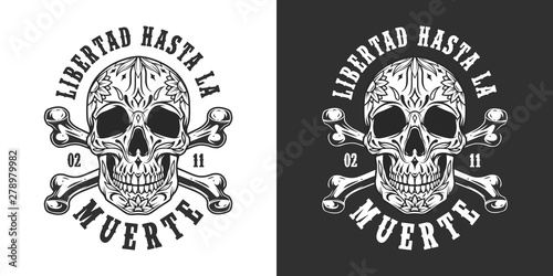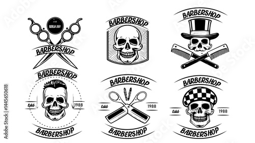 Vintage black moto skull labels, logos, emblems, badges vector illustration isolated on white background. Moto club, motor bike repairs and motorcycle service typography design.
