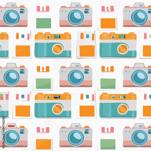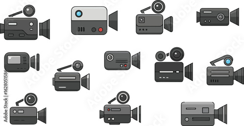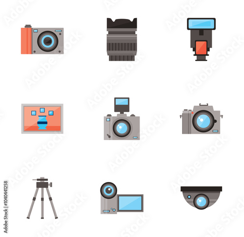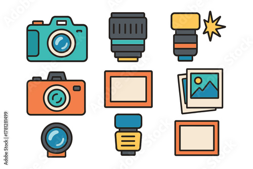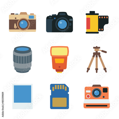 Vintage retro and modern photo camera vector icon set. Isolated digital and analogue photographer equipment and technique illustration