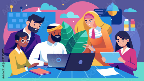 Virtual online graduation ceremony concept vector illustration. Students graduate by video call during coronavirus quarantine. Female student greets her fellow graduates in gowns and hats on a screen.
