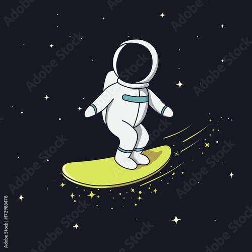 Virtual reality technology and entertainment concept vector illustration. Boy in VR headset flying in outer space with planets and stars. Space VR game.