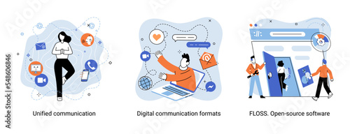 Virtual technologies, flat vector isometric illustration. Virtual assistant, smartphone navigation app, internet of things, smart home.