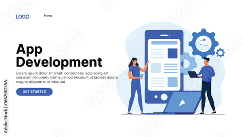 Vlog vector website template, web page and landing page design for website and mobile site development. Video blogging, vlogging concept with big mobile phone and tiny characters.