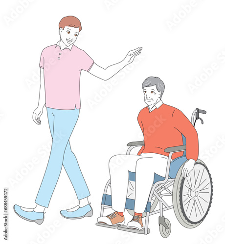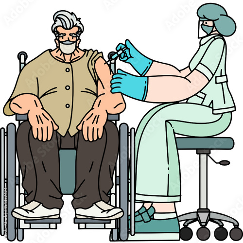 Volunteer team cutting hair to homeless person vector icon isolated on white background