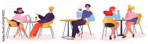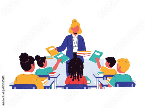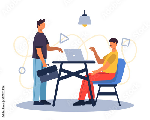 Volunteers barbers cutting hair of homeless person, flat vector illustration. Care for homeless, volunteering and charity.