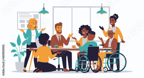 Volunteers collecting money, food, clothes for homeless people, flat vector illustration. Humanitarian aid, donation box. Volunteering, charity, care for homeless, food drive.