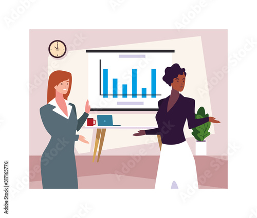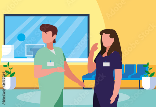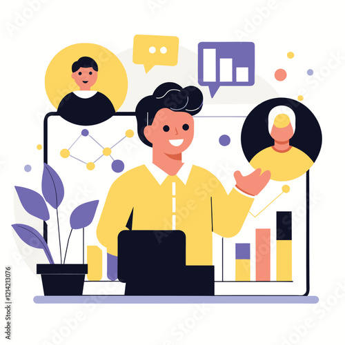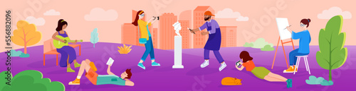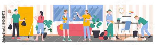 Voting and election concept vector flat illustration. Polling day. Voters male and female casting their ballots into ballot box in polling station.