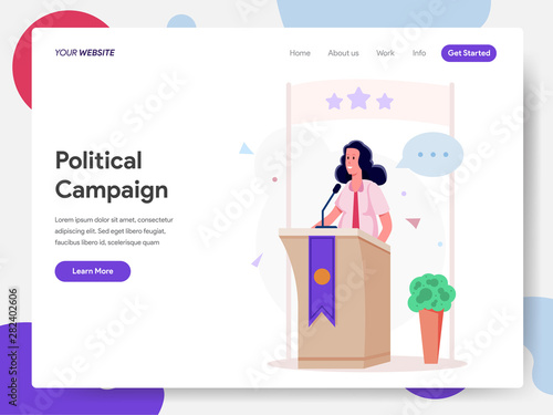 Voting landing page design, website banner template set, flat vector illustration. Female voter putting paper ballot into vote box. Voting and election.