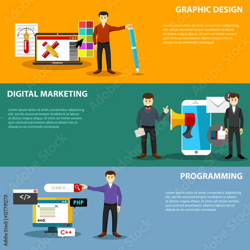 Voting web banner template set. Vector flat illustration of people involved in election process. Pre-election campaign, candidate statement, agitation, picket and voting in polling station.