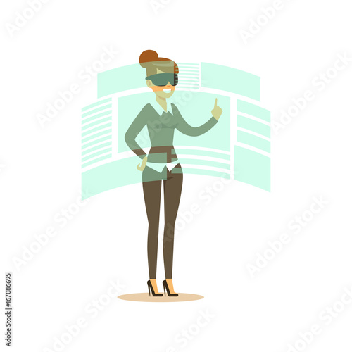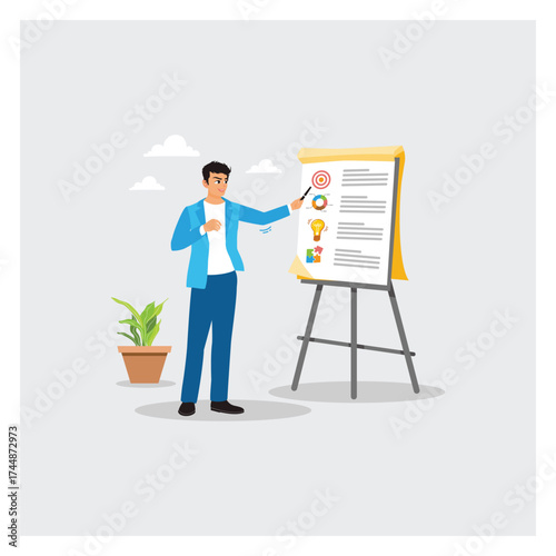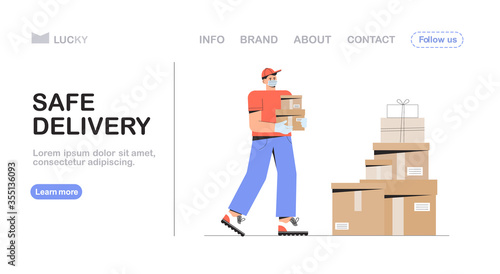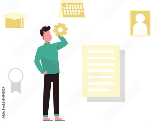 Vector illustration of waiter holding tray with cappuccino and cookies. Coffee house people flat style design element, icon isolated on white background.