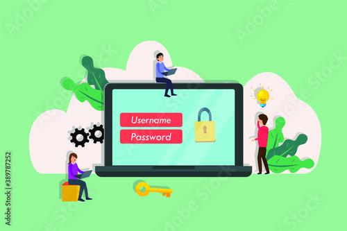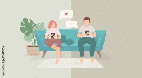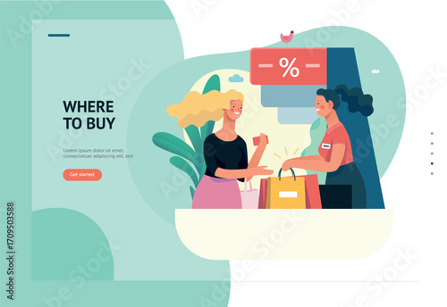 Vector illustration of waitress taking order from visitor male sitting at table and holding menu. Coffee house interior. Flat style design.