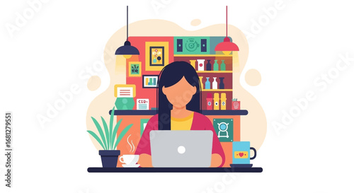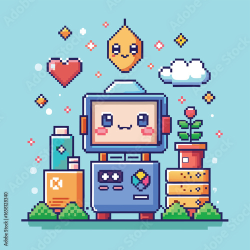 Warehouse storage app concept vector illustration. Tower crane putting cardboard boxes on big mobile phone shelves, tiny people workers. Mobile application for warehouse manager.
