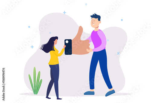 Man and woman volunteers collecting plastic bottles into garbage bag, vector flat illustration isolated on white background. Waste collection and sorting for recycling, street cleaning, volunteering.