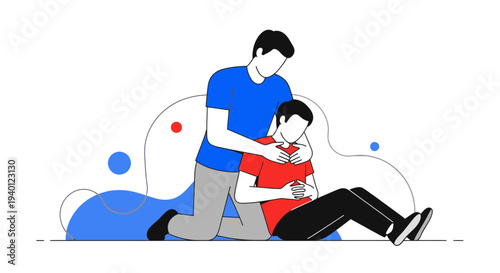 Two men garbage collectors collecting trash bags full of household waste, vector flat illustration isolated on white background. Garbage collection, park and street cleaning.