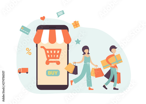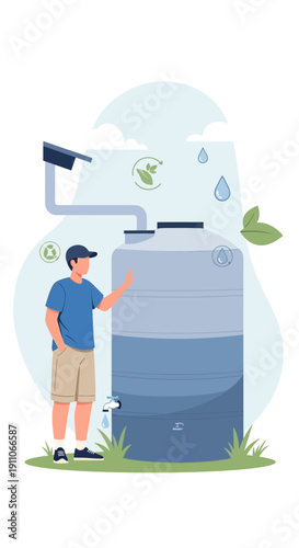 Water delivery step flat vector manual. Order from mobile phone app, processing, shipping, receiving and enjoy instruction illustration