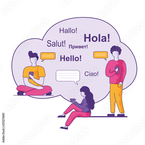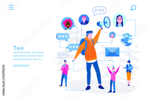 Huge pure portable water plastic bottle and micro male and female characters drinking water, delivery man. Bottled water delivery service concept for web banner, website page etc.