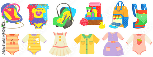 Water park slide set, flat vector isolated illustration. Waterpark ticket office and attractions. Aqua park spiral pipe, tube, waterslide collection. Summer outdoor water amusement, entertainment.