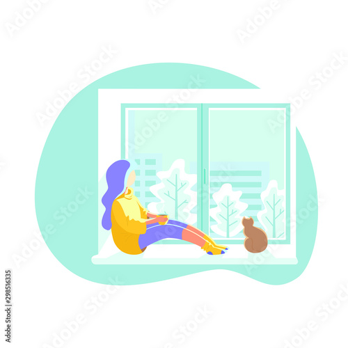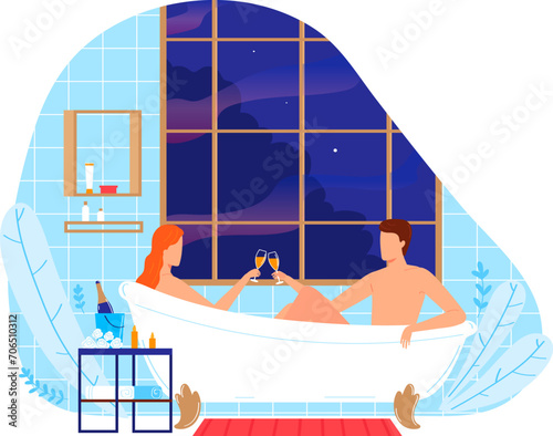 Vector illustration of swimming pool interior and young men playing water game. Water polo concept design element in flat style.