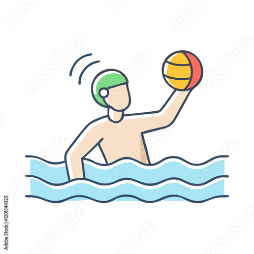 Water polo female players in action concept vector illustration. Women's swimming and water sports. Water polo team play game in tournament. Athlete attack goalkeeper with a ball.