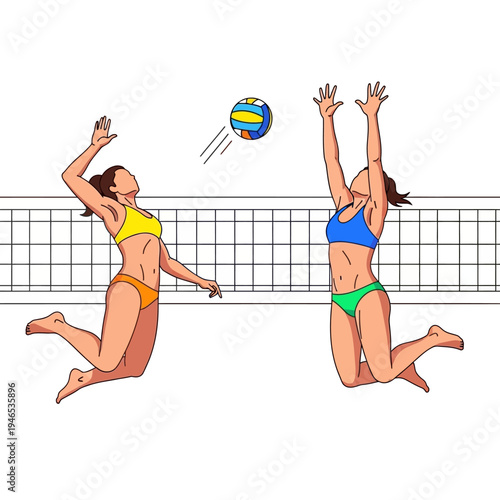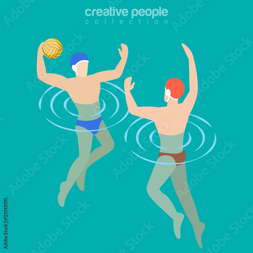 Water polo players in action concept vector illustration. Swimming and water sports. Water polo team play game in tournament. Athlete attack goalkeeper with a ball.
