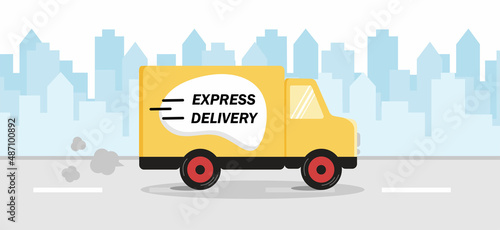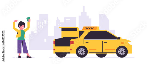 We have moved announcement, woman speaking through megaphone, location pin, boxes, transportation vehicle. Vector flat illustration for web banner, website page etc. Notice of office relocation.