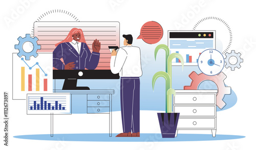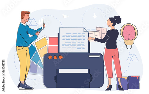 Male and female characters professional designer team creating website, vector illustration. Web designer services concept for web banner, website page etc.