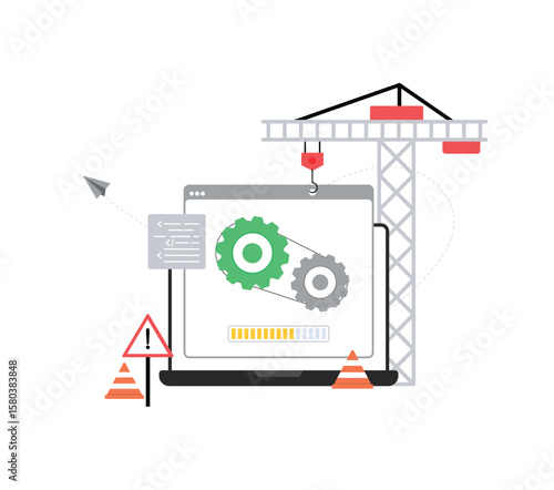 Web development, coding and programming vector banner template. Site construction service, web design studio for creation of digital software mobile, desktop platform