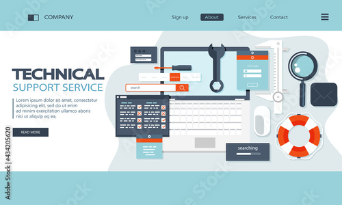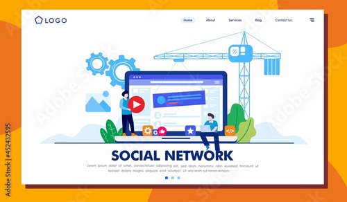 Web developer landing page template. Vector illustration of programmer designer building site for internet. Web development services concept for website and mobile site development.