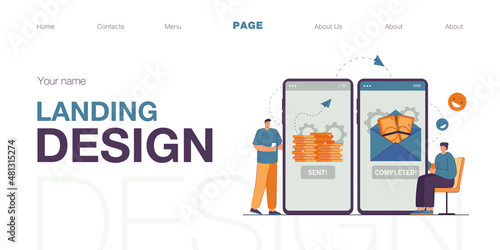Web developer landing page template. Mobile site creation process vector illustration. Web development services concept for website and mobile site development.