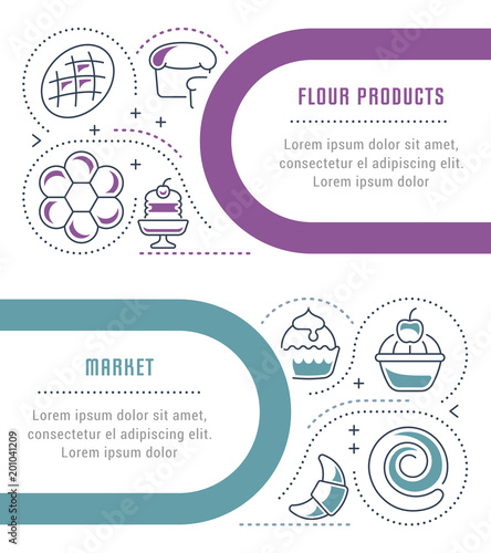 Web site onboarding screens. Bakery shop with sweet deserts. Menu vector banner template for website and mobile app development. Modern design linear art flat illustration