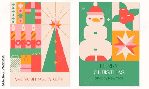 Web site onboarding screens. Christmas and new year party. Snowman, santa claus and christmas tree. Menu vector banner template for website and mobile app development. Modern design flat illustration