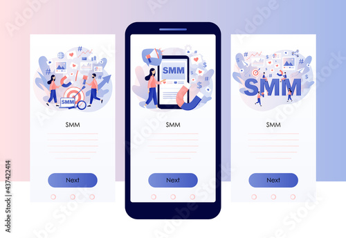 Web site onboarding screens. Digital marketing, customer review, photo sharing. Menu vector banner template for website and mobile app development. Modern design flat illustration