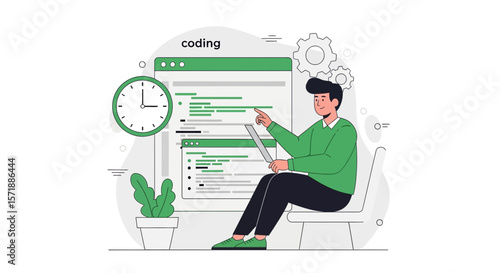 Student watching lecture online with teacher on laptop screen, vector flat style design illustration. Webinar, web seminar or workshop, distance learning, education, online video course.
