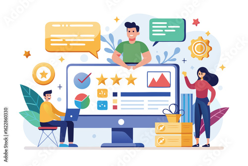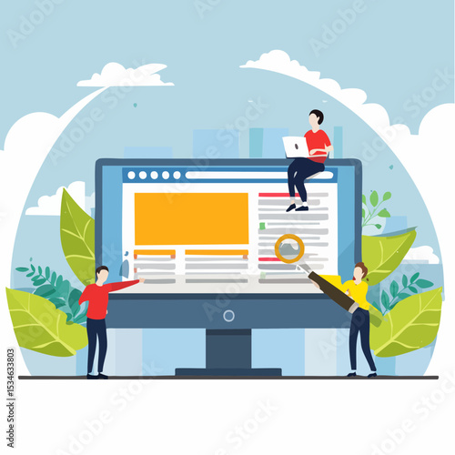 Webpage under construction. System administrators troubleshooting web site page error, flat vector illustration. Website repair services.