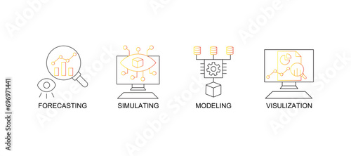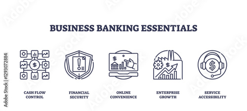 Onboarding for web site and mobile app. Menu banner vector template for website and application development. Demand Database Custom service, User account, Web history screens. Thin line art flat style