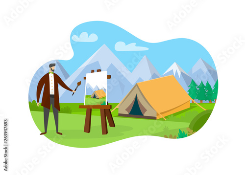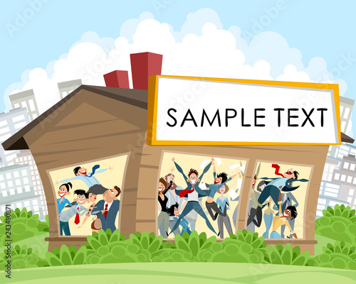 Wedding celebration vector illustration. Bride and groom, guests dancing to music, musician and singer, wedding cake flat style design elements.