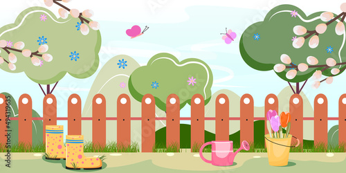 Vector illustration of young women decorating wedding tables and arch for outdoors wedding party. Chef and restaurant staff preparing food for wedding reception. Flat style design elements.