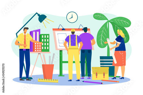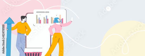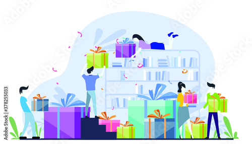 Wedding planner services concept flat vector illustration. Giant cake, gift boxes, wineglasses and tiny characters making wedding planning checklist.